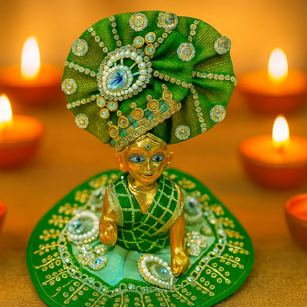 ₹549.00 – ₹907.00Price range: ₹549.00 through ₹907.00Green Designer Ladoo Gopal Dress | Elegant Thakur Ji Poshak with Stone & Sequin Embellishments