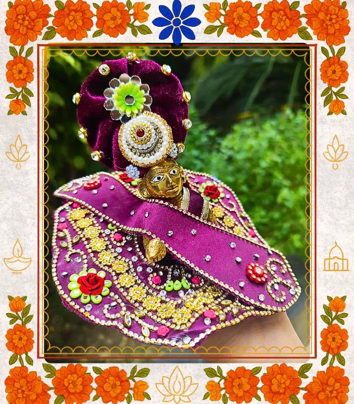 Purple Floral Embroidered Ladoo Gopal Dress | Designer Velvet Poshak with Rose Work