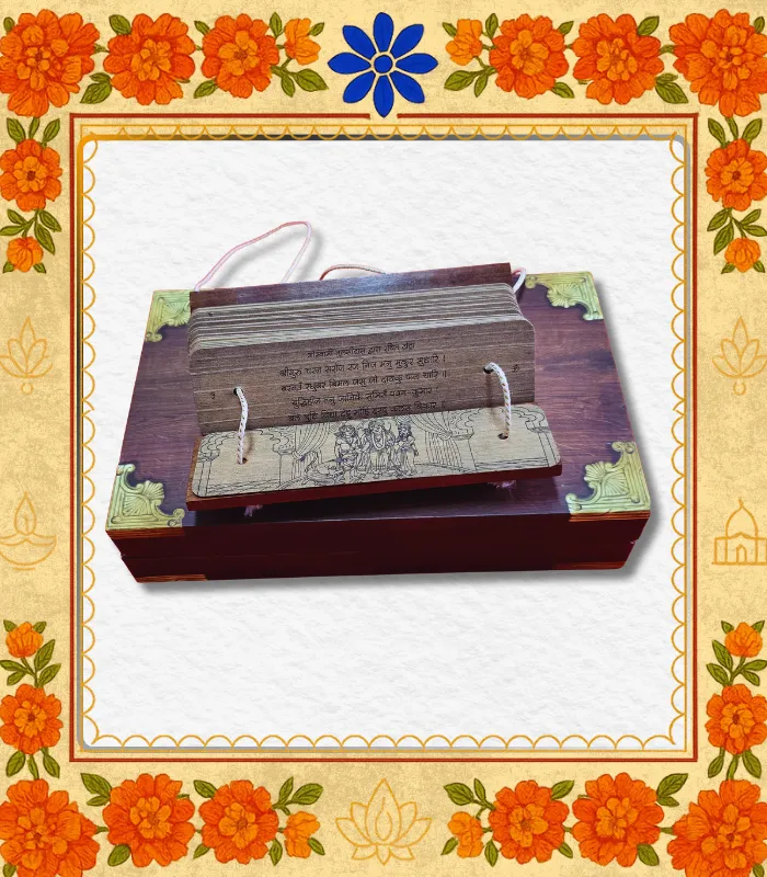 The Hanuman Chalisa is a devotional hymn recited by millions for courage, wisdom, and protection. This palm leaf edition connects you with ancient traditions and brings a divine touch to your spiritual journey, making it a treasured addition to any home or temple.