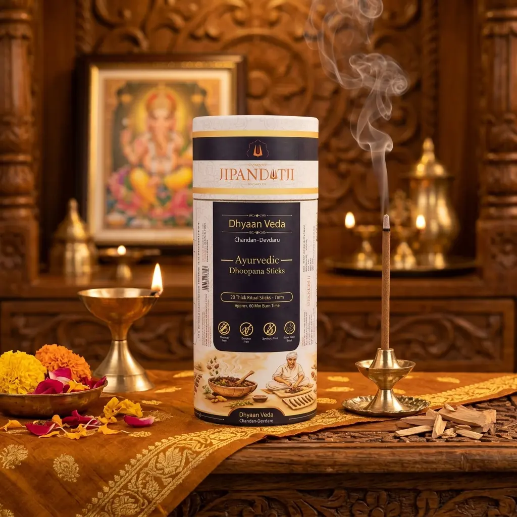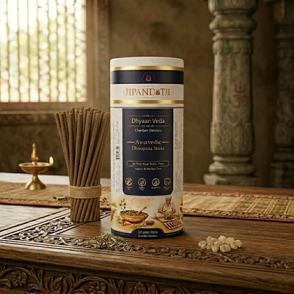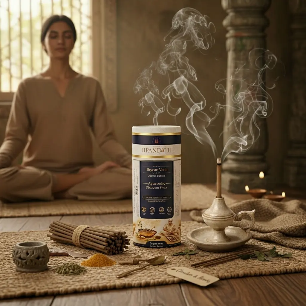 Experience deep calm and clarity with Dhyaan Veda Ayurvedic Dhoop Sticks by Jipanditji.
