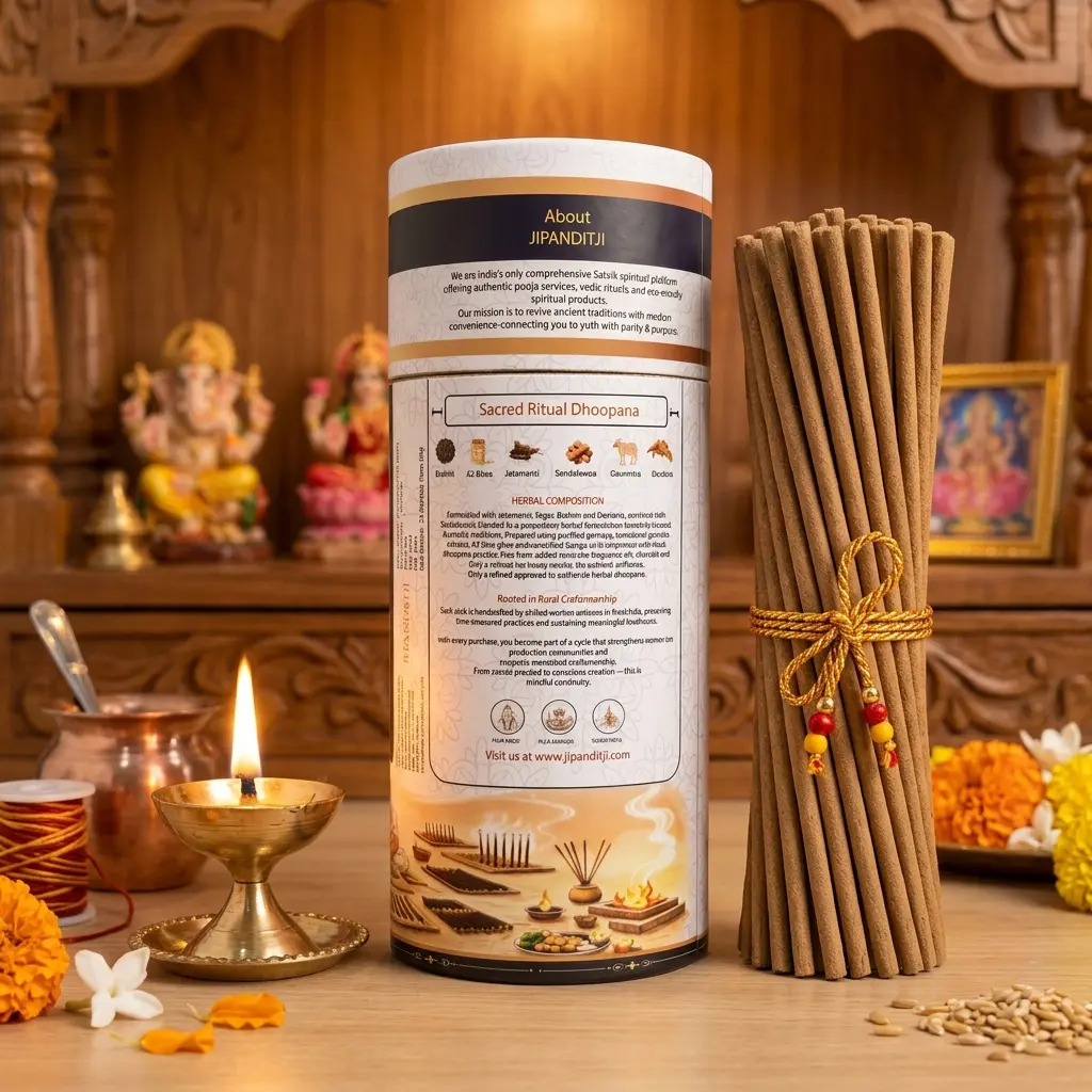 Prepared using traditional Ayurvedic methods with gomaya, gomutra extracts, A2 cow ghee and Ganga jal, it offers a pure and authentic dhoopana experience.