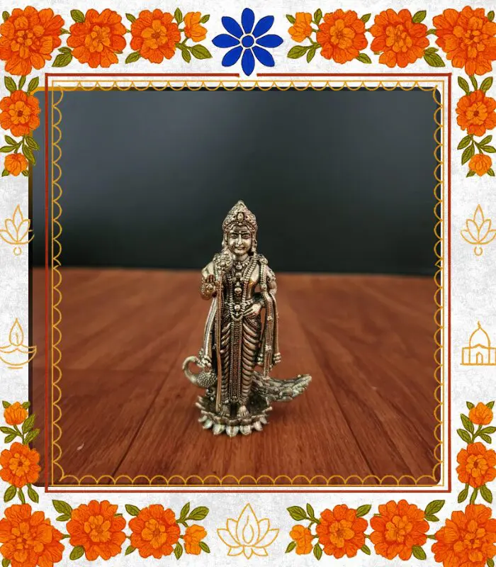 • Intricate Craftsmanship: Despite its small size, the idol captures the fine details of Lord Murugan, including his majestic posture, traditional attire, and the sacred Vel (spear), reflecting high-quality artistry.