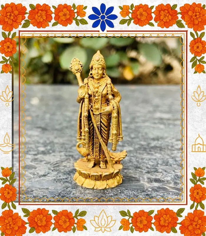 Lord Murugan is the warrior son of Lord Shiva and Goddess Parvati. He is revered as the symbol of courage and victory over negative energies. By placing this handcrafted brass Divine idol, you can invite positivity and prosperity into your space. Keeping the compact yet powerful brass Superfine Murti at your home, Temple, sacred corner, or office desk will bring along positive energies and divine presence.