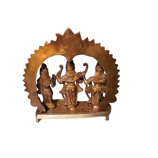 Made from high-quality brass, this statue is built to last, ensuring it remains a part of your sacred rituals for years. Every detail of this Ram Darbar statue is sculpted precisely, showcasing the divine figures of Lord Rama, Goddess Sita, Lord Lakshman, and Hanuman in their majestic glory. The intricately designed arch with a radiant sun motif adds to the divine aura.