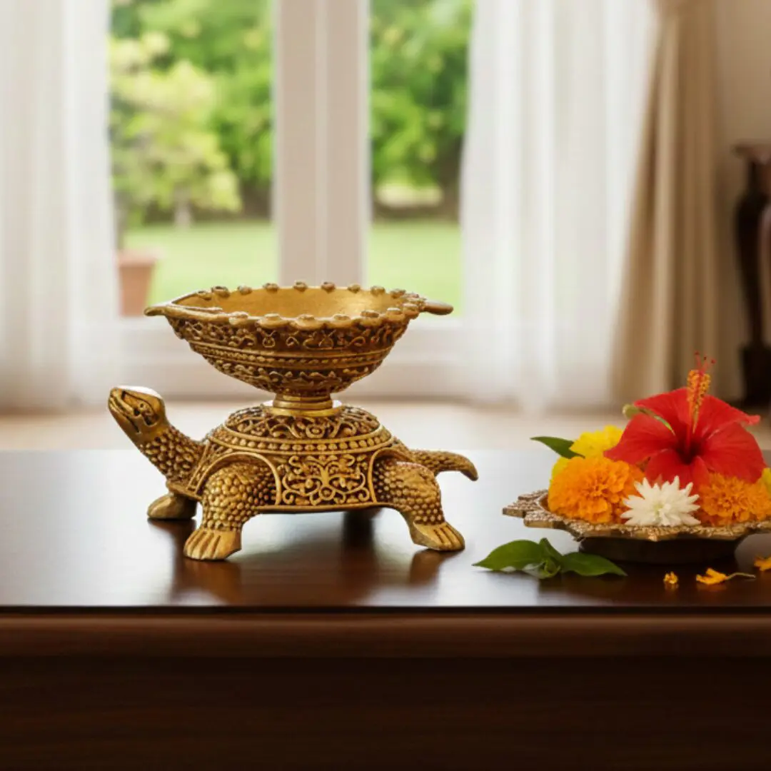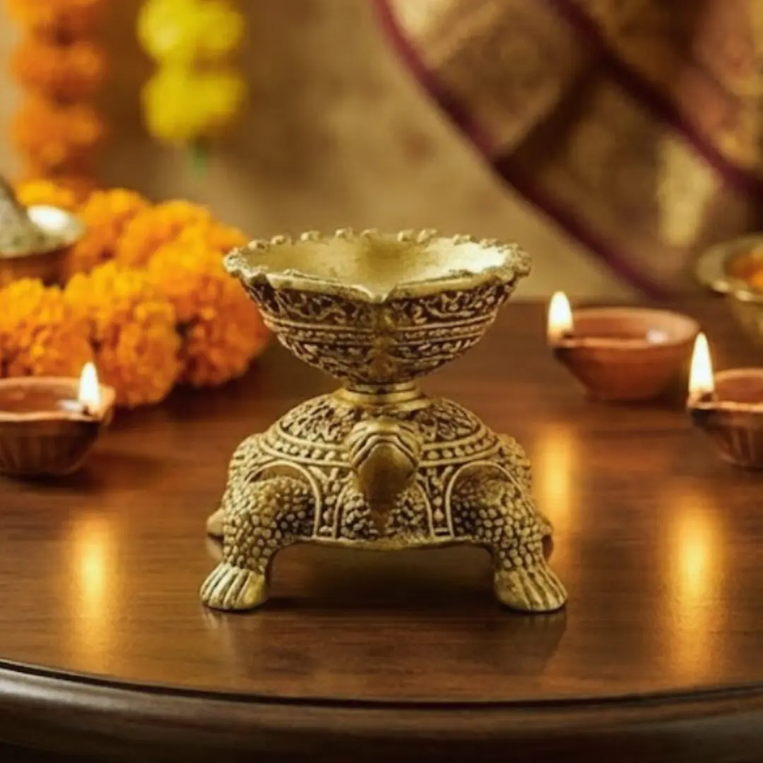 In Vedic tradition, the tortoise (Kurma) represents unwavering support, longevity, and foundation of prosperity. When combined with a Deepam (oil lamp), it becomes a potent spiritual instrument that stabilizes wealth, strengthens Vastu energies, and invokes divine protection in homes, offices, temples, and business spaces.