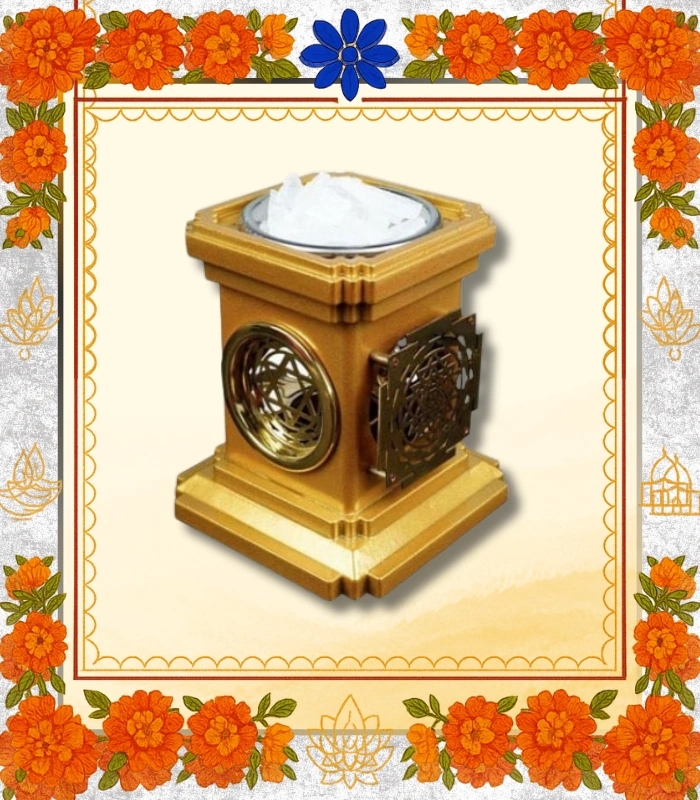 On the base of the Suvarndeep, the lamp illuminated by the powerful asterisk symbol of Panchatatva removes negative Energy and energizes the aura around you.