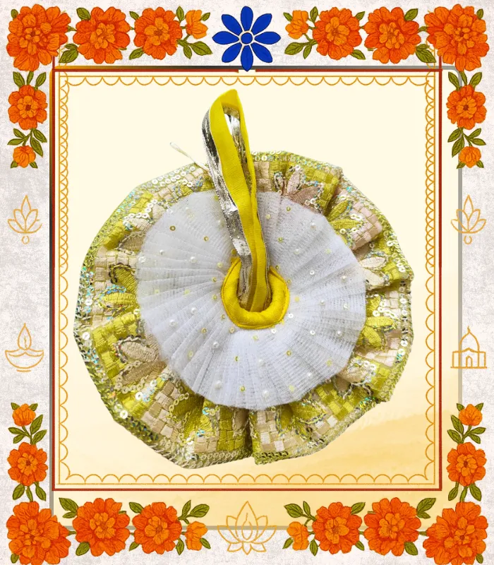 Yellow Golden Ladoo Gopal Dress | Divine Thakur Ji Poshak with Sequin & Pearl Work