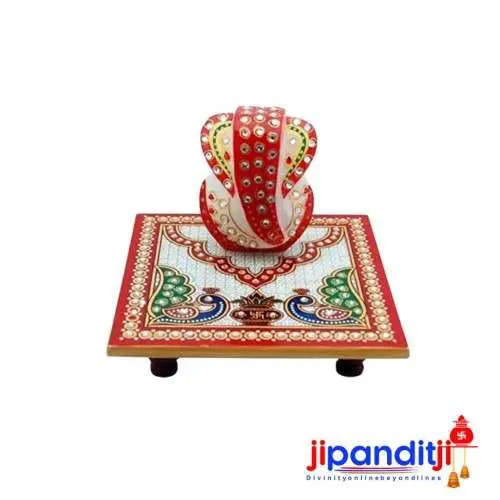 Ganesh Ji Idol with Chowki in white makrana marble | big size