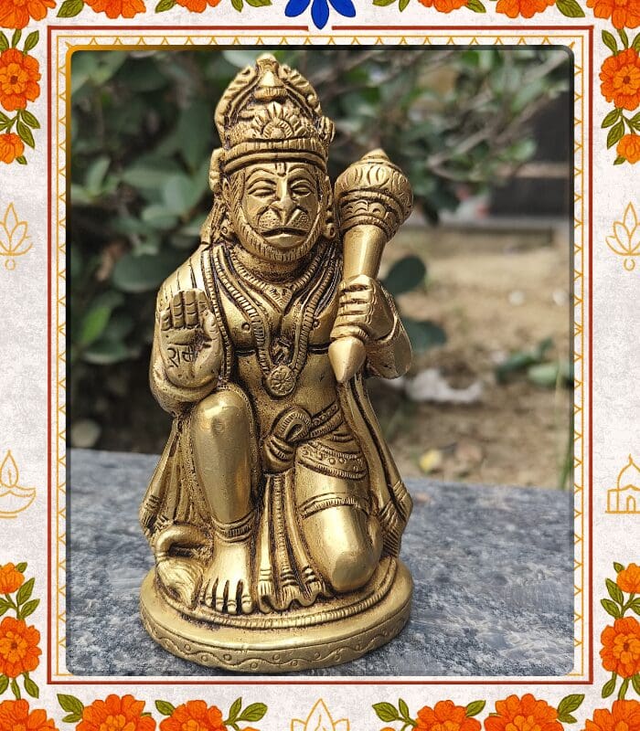 Hanuman ji Figurine in Antqiue brass For Office or Home and worship